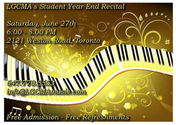 June 21, 2015June 22, 2015Lena Gauthier Christian Music Academy Student Year-End Recital Our year-end recital is coming up soon! If you can, please come encourage all the students. Free admission, free refreshments! Thanks! Share this: Share on X (Opens in new window) X Share on Facebook (Opens in new window) Facebook Like Loading... Related